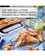 Cut and seal system makes ideal, triangular toasted sandwiches; improved design browns toasties more evenly and helps prevent filling leakage