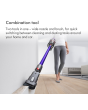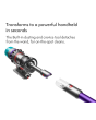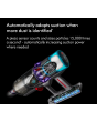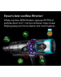 1 Suction tested to IEC62885-4 CL5.8 and CL5.9, tested at the flexible inlet, loaded to bin full, in Boost mode by independent third-party, SGS-IBR Laboratories US in 2022. 2 Filtration tested against ASTM F3150, tested in Boost mode by independent third-party, SGS-IBR Laboratories US in 2022. Filtration efficiency is calculated by comparing the number of standardised dust particles entering the vacuum cleaner against those released. The capture rate may differ depending on actual environment and the mode. 3 Applies in Eco mode on hard floor. Actual run time will vary based on power mode, floor type and/or attachments used. 4 Compared to the original Dyson Laser Slim FluffyTM cleaner head. Effectiveness influenced by ambient light conditions, debris type and surface. 5 Dynamic Load Sensing technology only applies in Auto mode with the Digital MotorbarTM cleaner head attached. 6 Best accuracy achieved in Auto mode. Auto ramp feature in Auto mode only. Testing based on average in home usage according to Dyson internal test data. 7 Quantity and size of dust displayed on screen varies depending on usage. Examples shown may occur within one or more displayed size range. Automatic suction adaptation only occurs in auto mode. 8 Compared to the Dyson V15 DetecTM vacuum.
