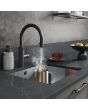 A Quooker Flex 3-in-1 boiling water tap in your choice of five finishes; Chrome, Stainless Steel, Black, Gunmetal and Rose Copper, complete with PRO3 tank providing 3 litres of instant boiling water. The Flex tap dispenses cold, hot and 100°C boiling water and benefits from a flexible pull out hose. The boiling water stop ensures the Flex can never dispense boiling water when the pull out hose is pulled out.